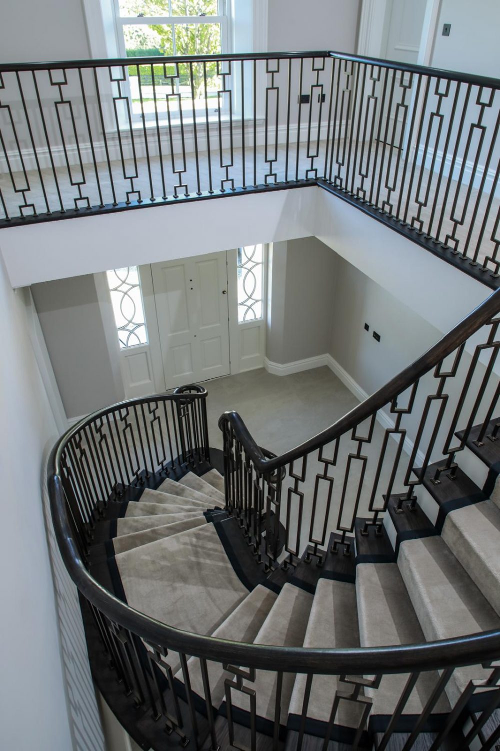 The final result is a stunning statement piece that transforms the home’s entrance hall, demonstrating how bespoke metalwork can turn an architectural challenge into a breathtaking feature.
